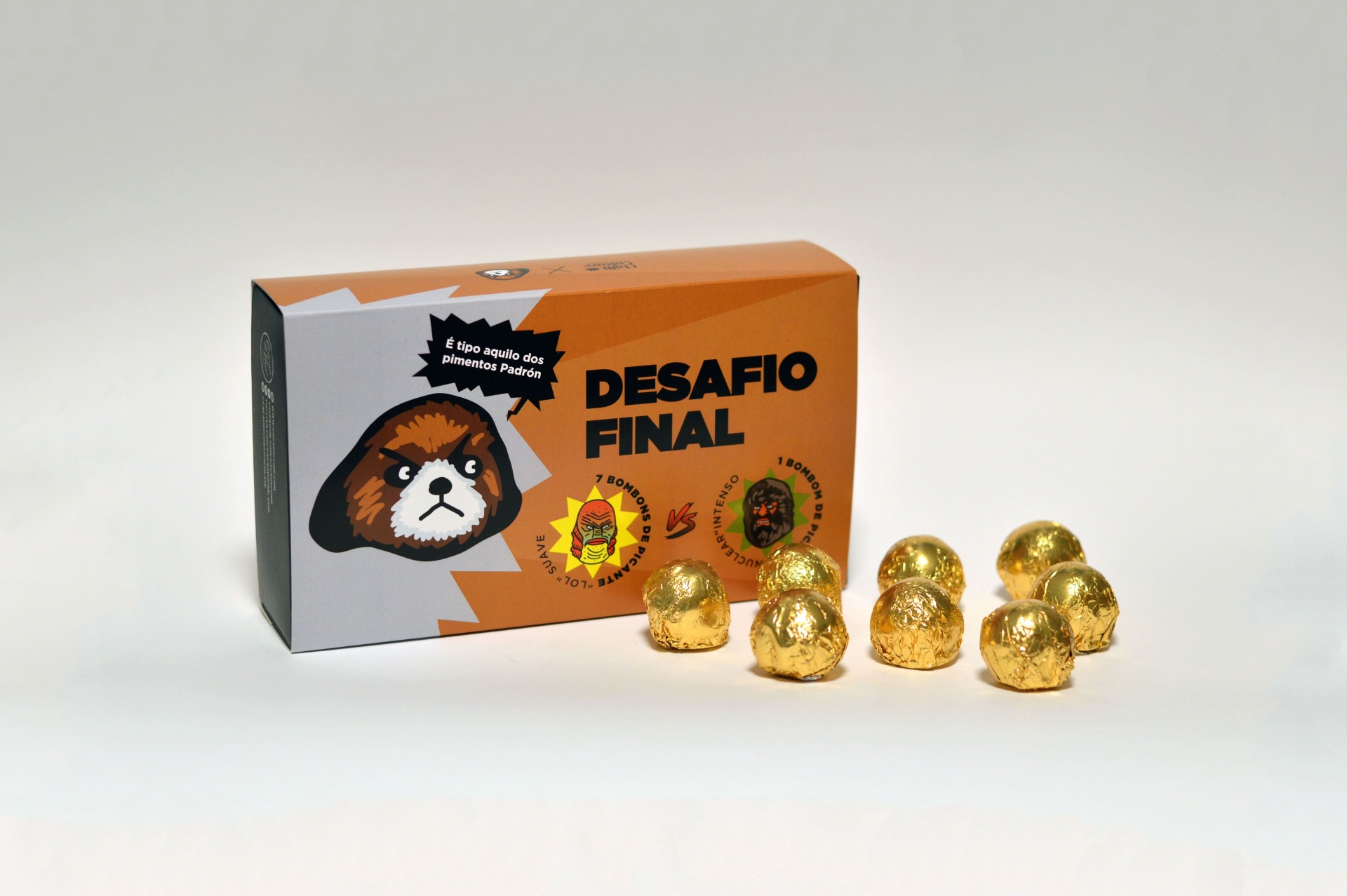 - 1 bombom com recheio de picante "Nuclear" (carolina reaper - intensidade que Virgem Nossa Senhora)